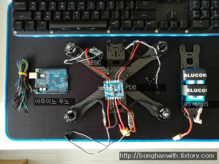 아래 사진은 드론 브러러쉬리스 모터 동작하기 위한 재료들이다.