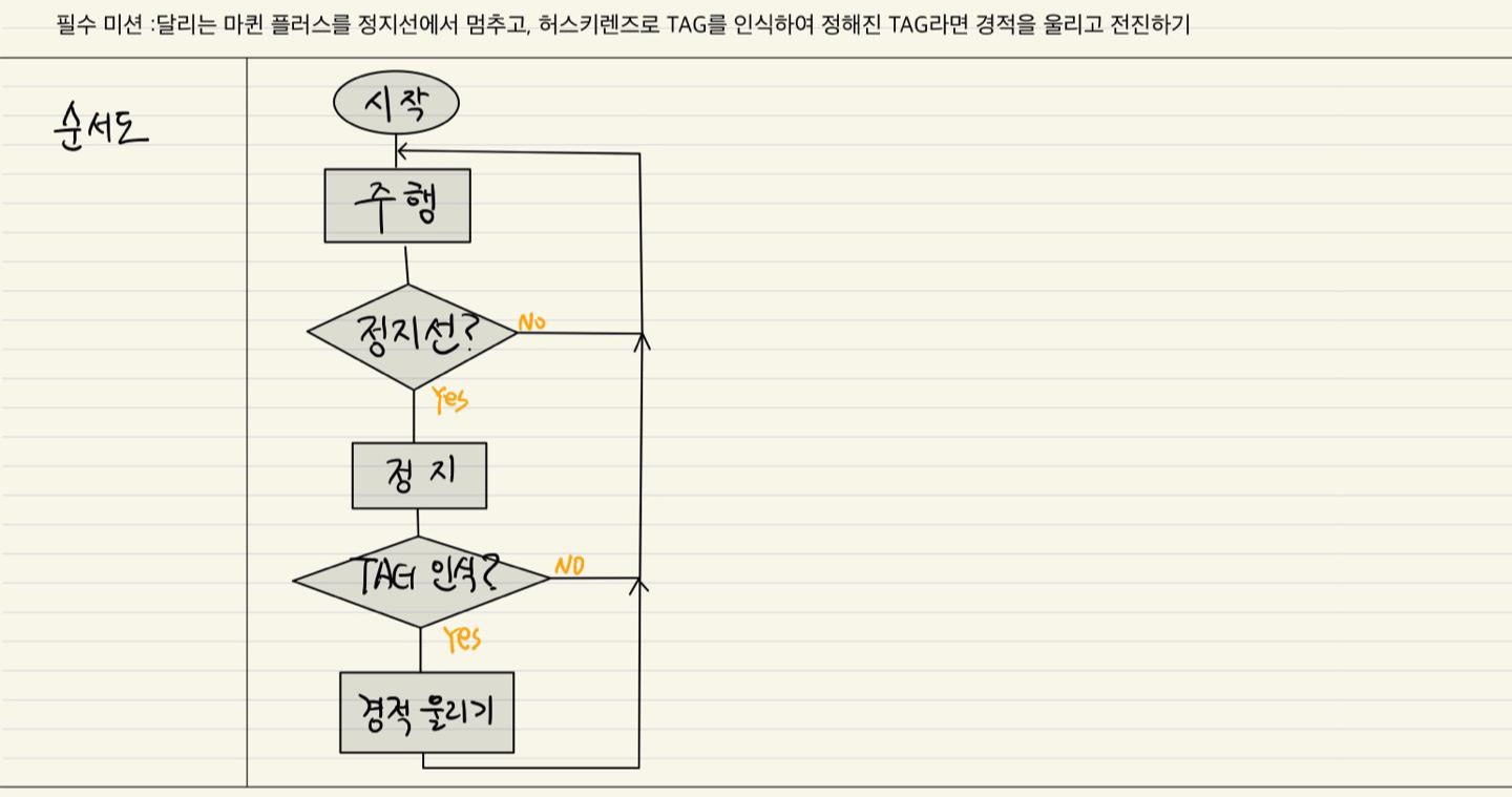 || 필수 미션 : 마퀸 플러스가 정지선 앞에 정지하여 정해진 TAG가 인식되면, 경적을 울리고 전진하기