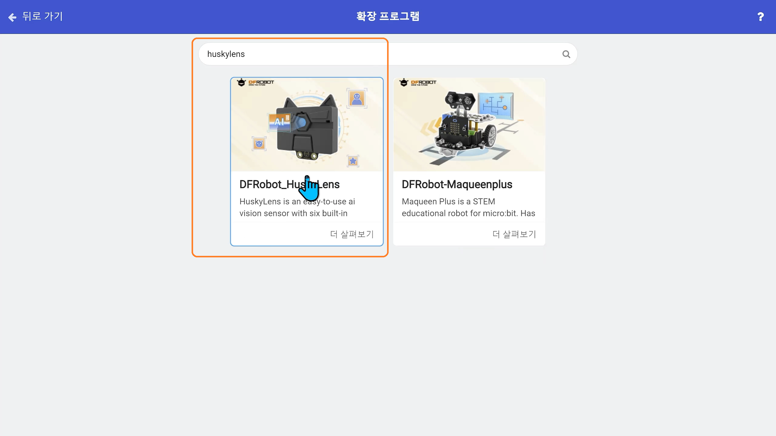 고급 > 확장 메뉴를 이용하여 마퀸 플러스와 허스키렌즈 확장 프로그램을 추가한다.
