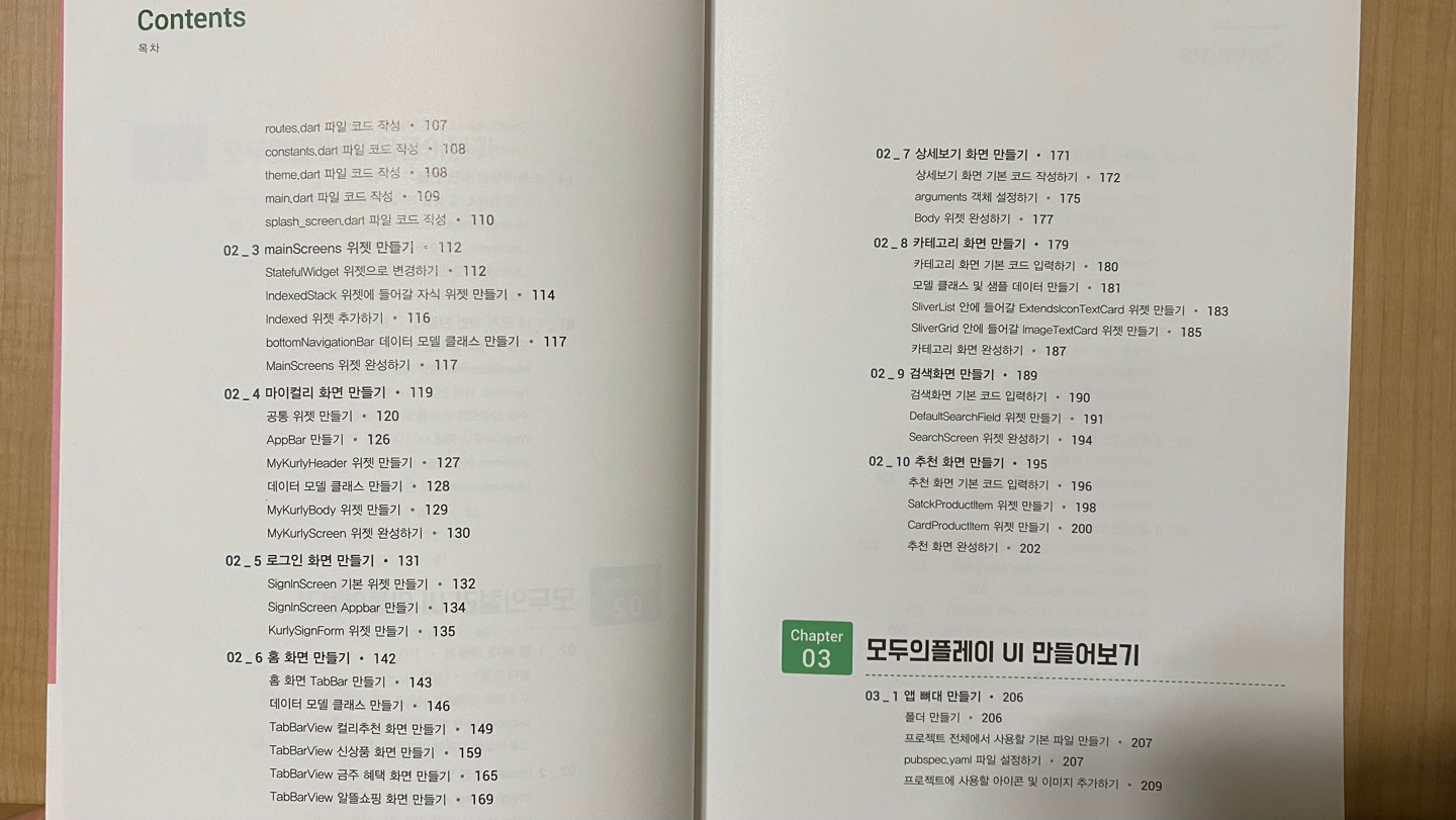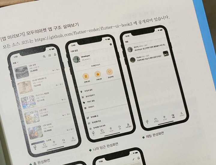 입분편에서는 플러터를 배웠다면, 실전편은 클론코딩으로 전체적인 UI제작을 통해서 익히기에 좋은 책이다. 개인적으로 이 책을 보고 따라하면서 느낀점은 핸드폰에서 동작하는 앱을 쉽게 만들 수 있겠구나라는 생각이 들었다.