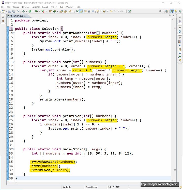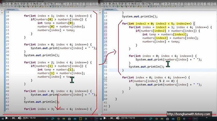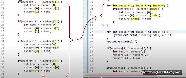 * 반복문(for) 사용하여 정렬코드 작성하기