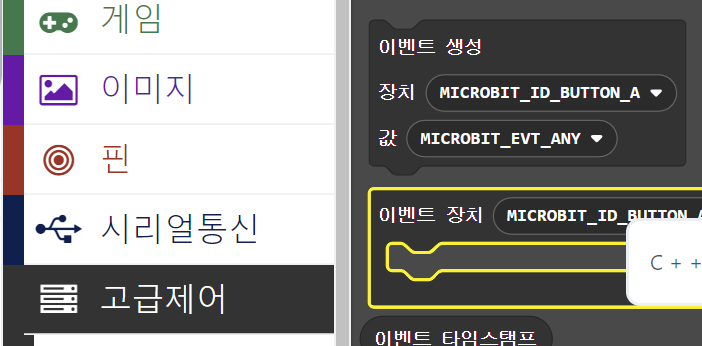 [고급 > 고급제어 > 이벤트 생성] 블록