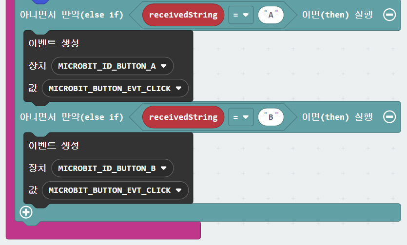 이렇게 블록을 만들면 마퀸카트에서 A, B버튼 누른 것처럼 할 수 있다.