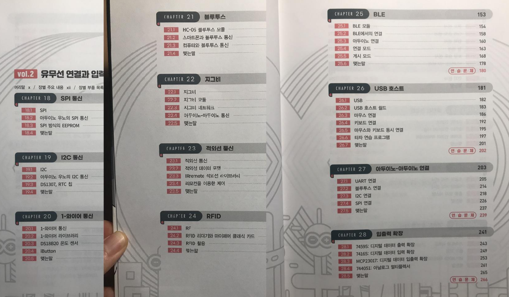 특정 대상에 대한 바이블이라하면 관심이 있기 마련이다. 1권짜리 두꺼운 책이겠구나 생각했는데, [vol.1 아두이노 기초 편], [vol.2 유무선 연결과 입력 장치 편], [vol.3 출력 장치와 고급 기법 편], [vol.4 인터넷과 아두이노의 확장 편]으로 총 4권으로 구성되어 있다. 그래서 책의 두께가 얇지 않을까 걱정이 됐다.