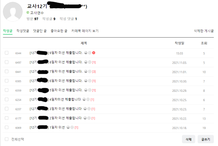 일주일에 3개의 강의와 미션 활동을 하면 된다.