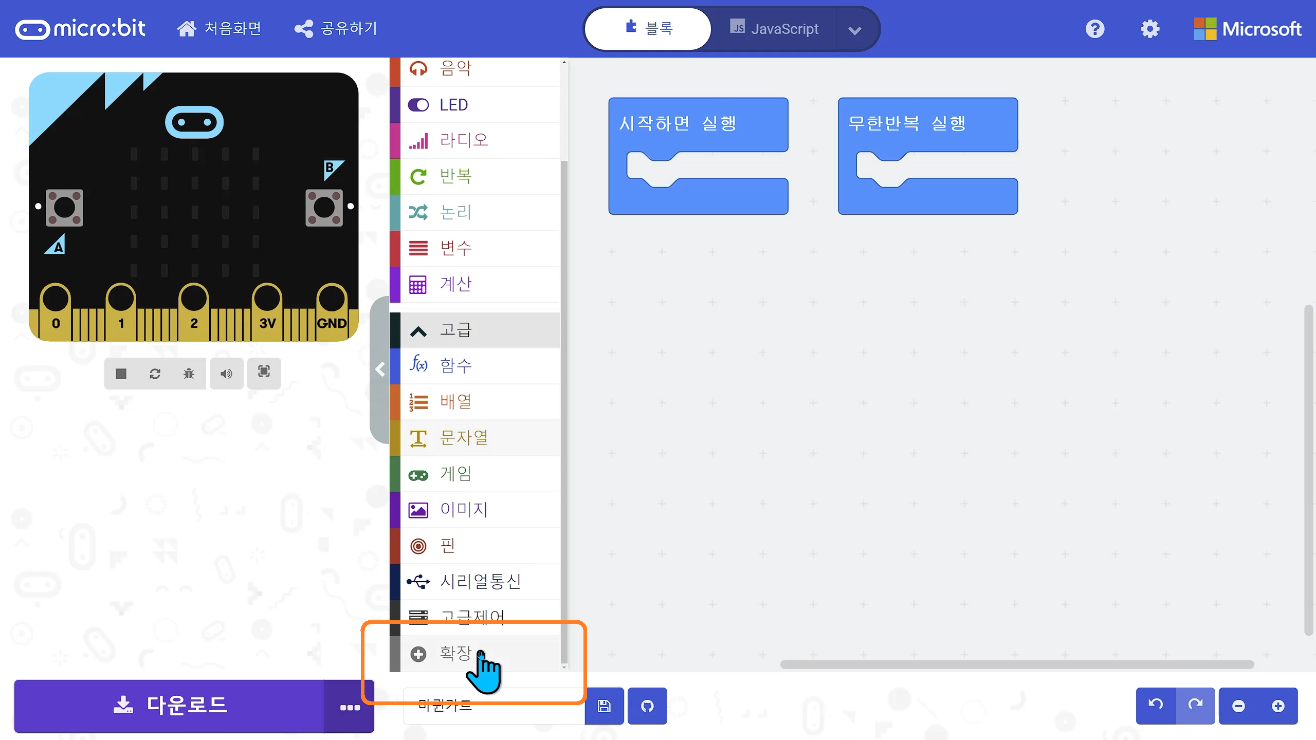 2) 마이크로비트의 한계이지만, 교육용이라지만, 차기 마이크로비트는 원하는 만큼 블록 코드를 작성되게 해 주면 좋겠다.