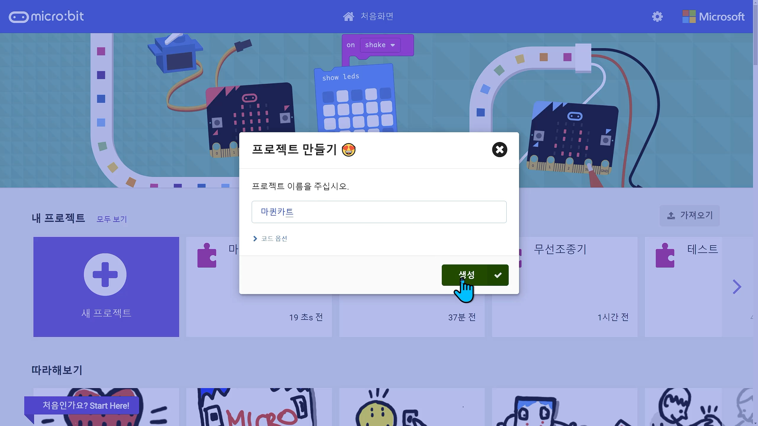 '마퀸카트' 이름으로 새 프로젝트를 만든다.