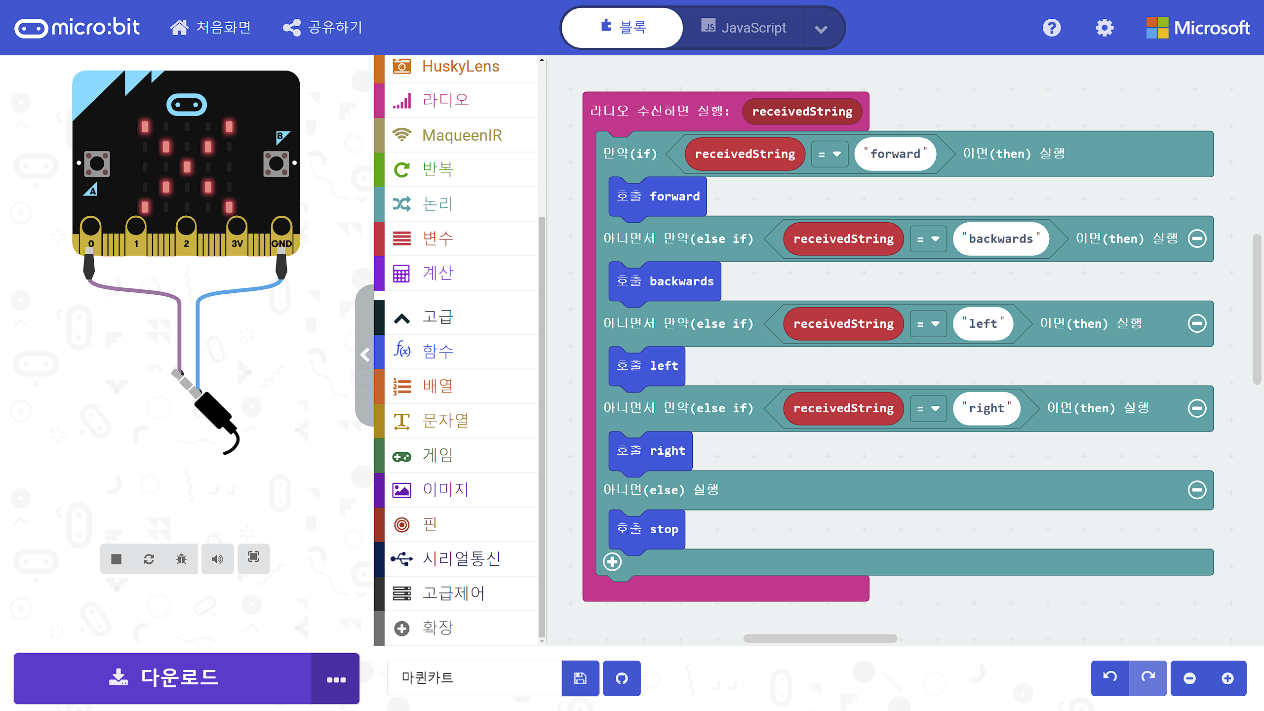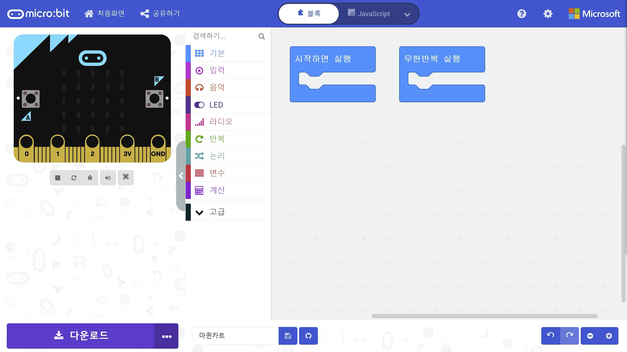 Microsoft MakeCode for micro:bit에서 ❤️ 으로 만들었습니다.